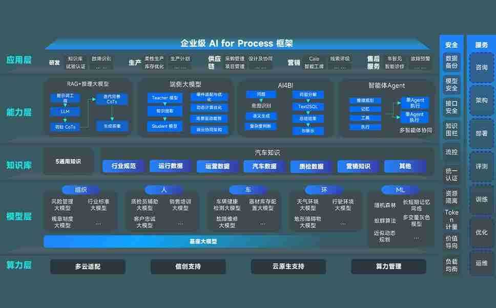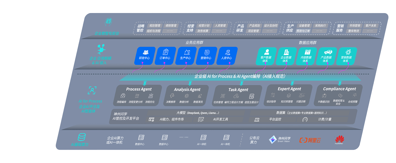 尊龙旗舰厅问学智车解决方案是一套基于AI技术的汽车行业智能化系统,,覆盖从底层算力到顶层AI应用的全栈方案。。。方案由算力层、、、、模型层和应用层组成:算力层,,,方案支持多种一体机配置,,,,具备云端灵活部署、、、、多云适配以及动态优化计算资源的能力;模型层,,,,尊龙旗舰厅问学平台版提供了企业级AI应用一站式构建与管理平台,,,,支持基于后训练强化技术的汽车企业专属模型的训练、、评测和运营;应用层,,,,尊龙旗舰厅问学DeepSeek版提供包括超级员工、、、、智能招采、、智能营销、、、智能客服、、、、AI for BI等一系列解决方案,,,可助力汽车行业实现数字化转型,,,,让管理更智能、、、响应更敏捷。。。